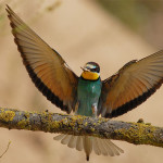 Deze vogel kwam aanvliegen en vlak voor de landing kon ik deze opname maken waarbij je goed de kleuren van zijn vleugels kunt zien.